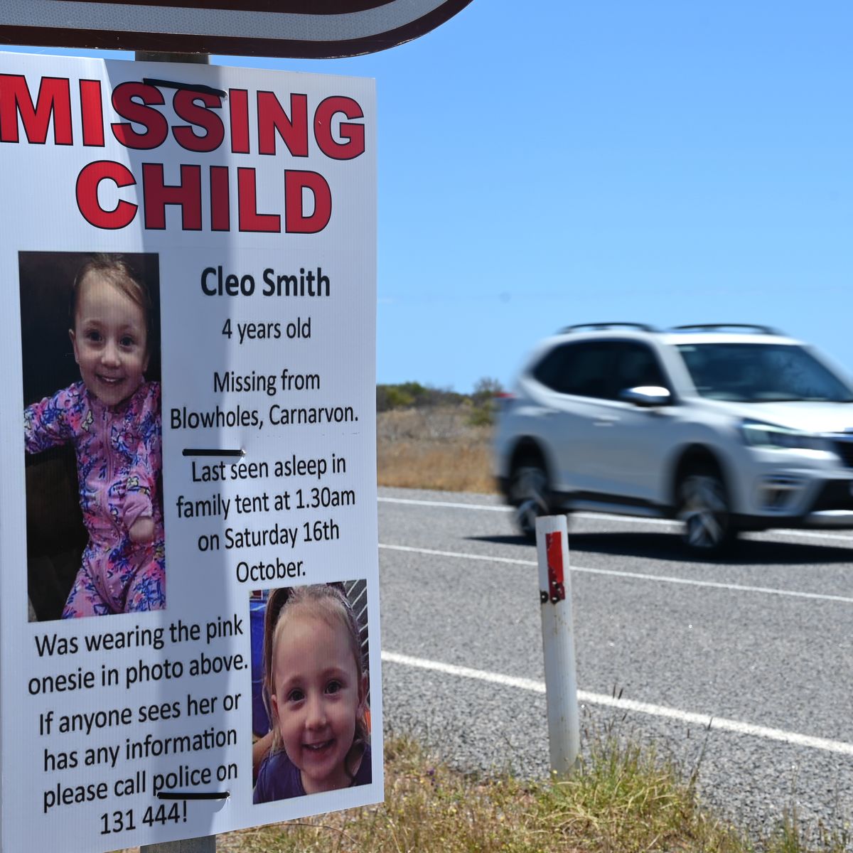 20 hours agoA missing person poster for four-year-old Cleo Smith in Carnarvon on October 29 2021 14 days after she disappeared from her familys tent at the Blowholes campgrounds. Cleo Smith 4yrs last seen Western Australia Blowholes Shacks campsite in Macleod 16th October 2021 at 130am WA POLICE - Anyone with information is asked to call police immediately on 131 444.
